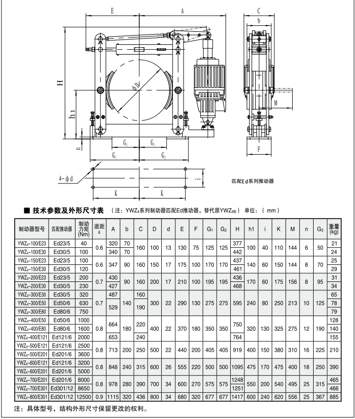 電力液壓制動器是使機械中的運動件停止或減速的機械零件。俗稱剎車、閘。制動器主要由制架、制動件和操縱裝置等組成。有些制動器還裝有制動件間隙的自動調(diào)整裝置。為了減小制動力矩和結(jié)構(gòu)寸, 制動器通常裝在設(shè)備的高速軸上,但對性要求較高的大型設(shè)備(如礦井提升機、電梯等)則應(yīng)裝在靠近設(shè)備工作部分的低速軸上。有些制動器已標準化和系列化,工廠制造以供選用。